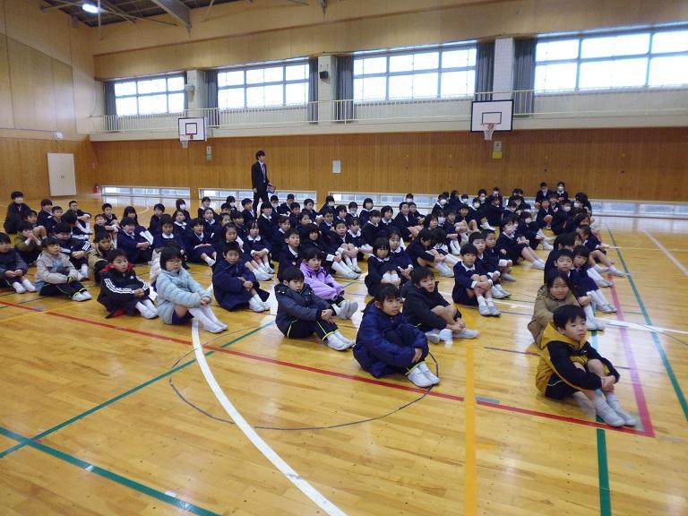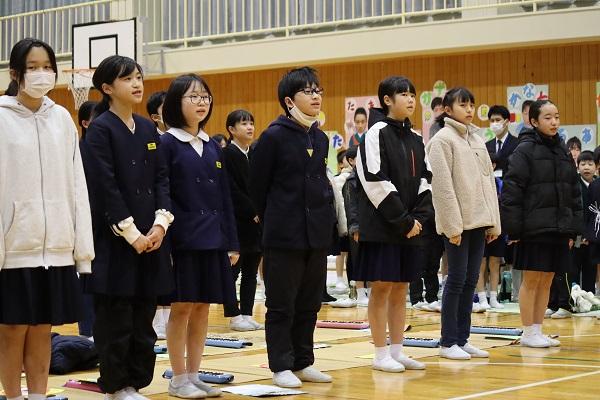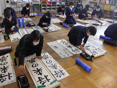 競書会では1・2年生は鉛筆を持って、3~6年生は筆を持って書きました。冬休みの宿題の書き初め練習のがんばりが感じられました。