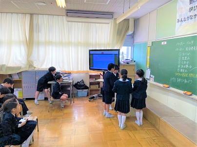 3年生は、「総合の学習の時間」に「町のよいところ」をテーマに調べ学習をしてきました。そして、町内5校の3年生がオンラインで、自分達が調べたことを発表する「合同発表会」を行いました。本校の3年生は、それぞれの地区の「ししまい」について分かりやすくプレゼンにまとめ、堂々と発表ができました。