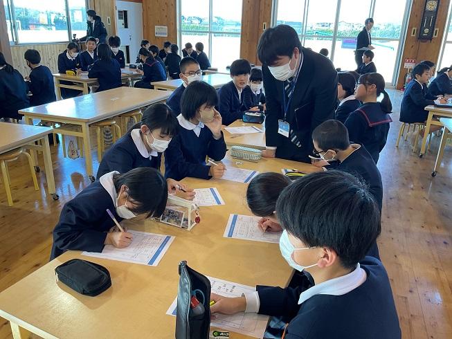 1・2学期に続き、講師として中西先生(金沢子ども財団元職員)が来てくださり、3限目に5年生、4限目に6年生と行いました。