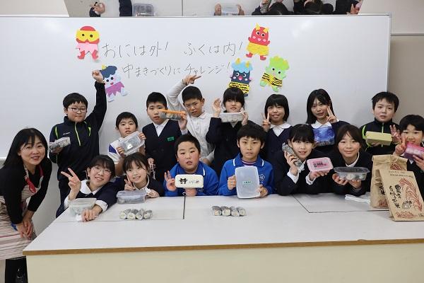 地域の方から秋にご寄付いただいたお米で、12月に1年生から4年生は「おにぎりづくり」をしました。そして、5・6年生は「中巻きづくり」に挑戦しました。「中巻きづくり」では、一本ずつ丁寧に巻き、出来上がるごとに笑顔が広がっていきました。6年生は昨年に続き2回目ということもあり、手際よくできました。手作りの楽しさ・感謝の心・地元への誇りを感じた時間でした。貴重なお米を本当にありがとうございました。