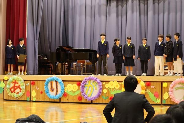 学校のリーダーとして頑張った6年生に「ありがとう」の気持ちを伝える「6年生を送る会」を行いました。それぞれの学年が、その学年ならではの出し物を披露しました。どの出し物にも6年生への「感謝」と「応援」の気持ちが込められていました。特に、準備から当日の進行・後始末まで、中心的役割を果たした5年生の姿は素晴らしく、本当に頼もしかったです。