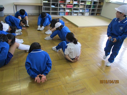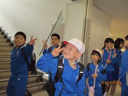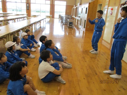 下級生は、6年生のいうことを守って校内をまわります。