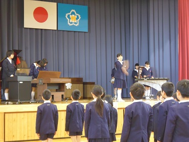 音楽隊の合奏にのせて、元気な声が響きました。