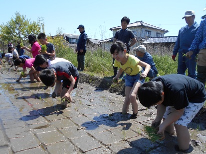 5年生が、田植え体験をしました。
