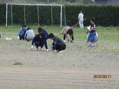運動場の草が刈り取られ、