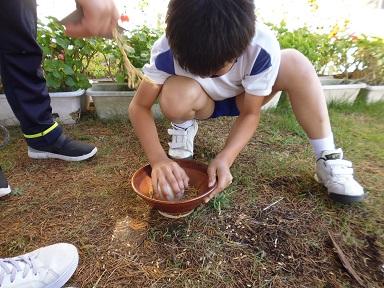 学校ボランティアの山田 礼二さんに教えていただき、お世話いただき、1・2年生は「サツマイモ」、5年生は「米」を無事に収穫することが出来ました。