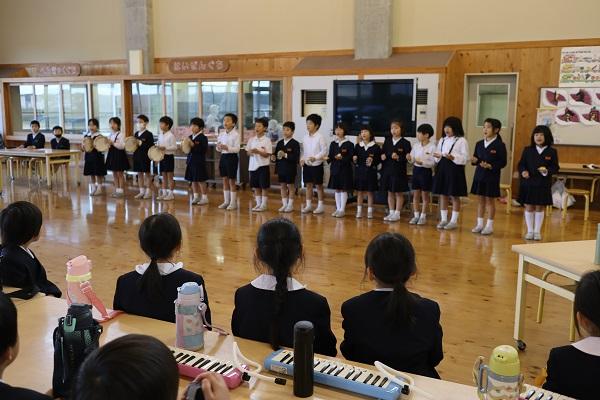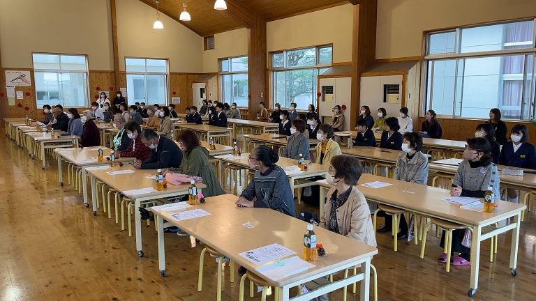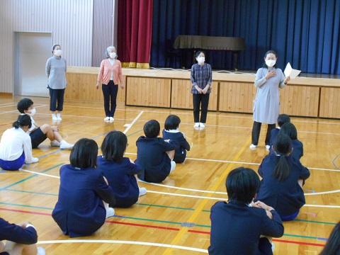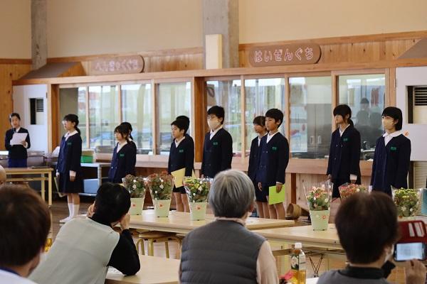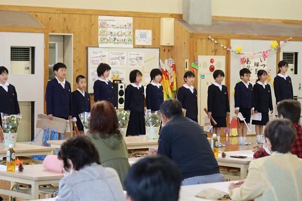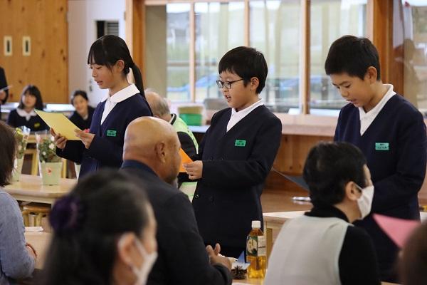 地域のボランティアの方々をお迎えして「ふれあい感謝の集い」を行いました。23人の方が来てくださり、大変うれしく思います。また、保護者の方々もたくさん見に来てくださいました。