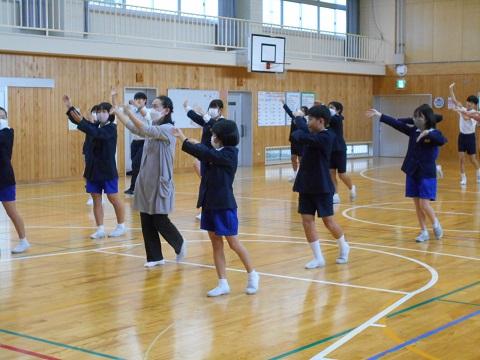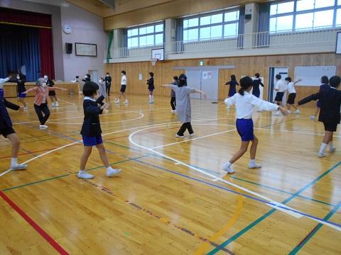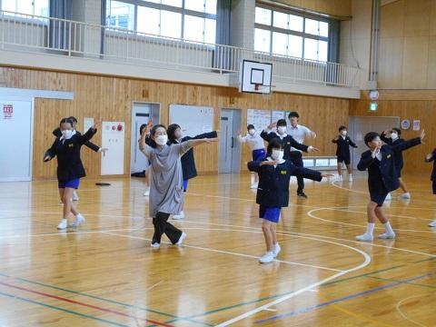 これまで、6年生は総合的な学習の時間で、末森城の合戦等について学んできました。末森城民謡保存会の方がご来校くださり、今年度新「末森城讃歌」の踊りを教えていただきました。踊りに込めた思い等も教えていただき、子ども達は、すぐに覚え、味わい・楽しむことができました。