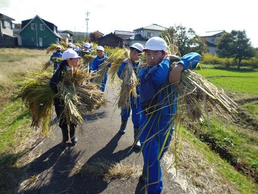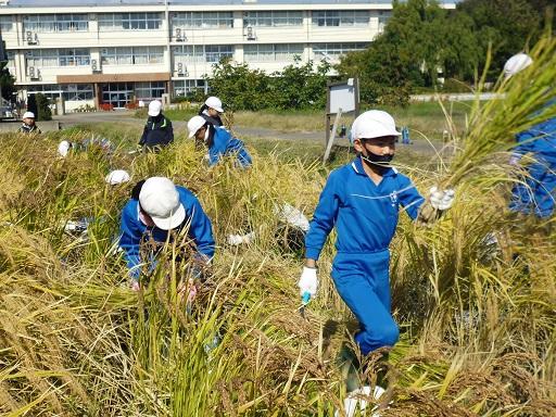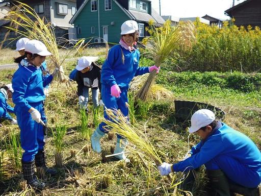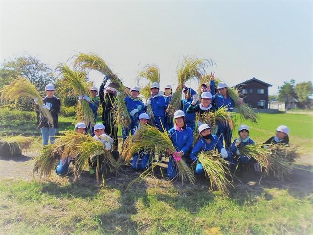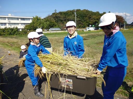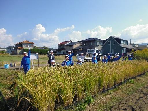 ・今日の稲刈りでとてもよかったところは、「チームワーク」です。いつも5年生はチームワークが良いけれども、今日は友達と一緒に協力して稲刈りをしたり仕事を終わらせたりする姿がとても見えました。チームワークが良かったのでいねかり作業もすぐに終わってしまいました。5年生のチームワークはとてもすごいものだなと思いました。