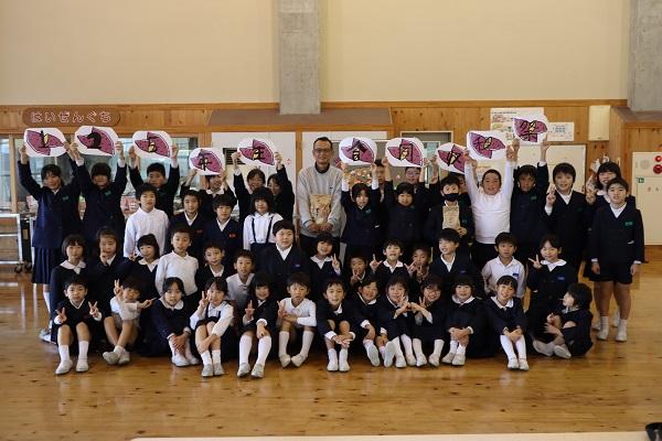 2023年12月14日 11時17分学校ボランティアの山田 礼二さんに教えていただき、お世話いただき、1・2年生は「サツマイモ」、5年生は「米」を無事に収穫することが出来ました。