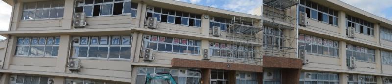 「これまでの相見小学校の歴史を大切にしながら、新しい学校も大切にしていこう」という思いを込めて、児童が考えたスローガンを地域の方へ届けるため、校舎窓に掲示しました。