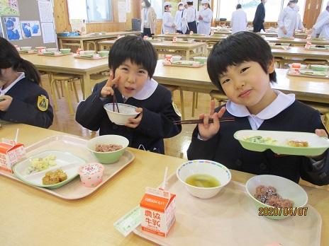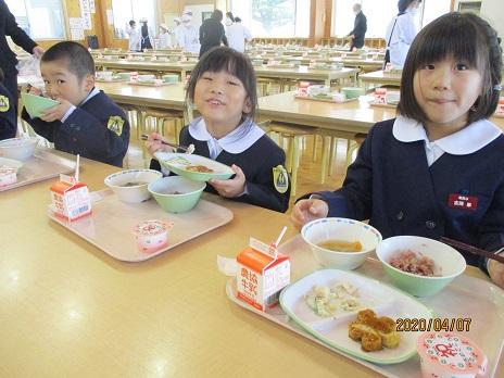 2020年4月10日 13時08分4月7日(火)には、1年生にとって、初めての学校給食でした。