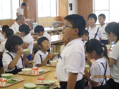 3年生と4年生が大きな声を気持ちよく出して挨拶をしています。