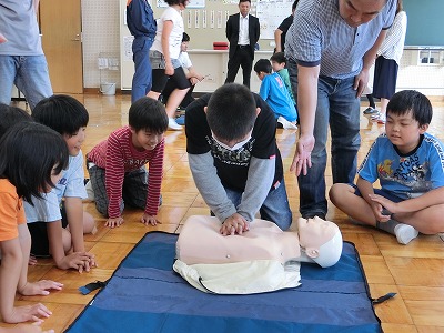 今年度は、親子でAEDの講習会を実施しました。大人でもいざとなると、緊張します。こどものうちから、実技講習を受講しておくことは、大変意義深いものだと思います。5年生は、大変立派な態度で講習を受けていました。