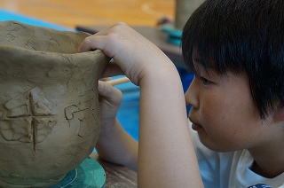 4・5年生が陶芸の先生方にお習いしてランプシェードつくりに挑戦しました。 約2時間あまりで世界で一つだけのマイランプシェードが完成しました。 どの作品も傑作揃いです。