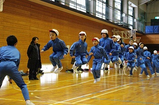 4年生が鹿波獅子太鼓を練習しました。「トントコトンのスッ トントン」などリズミカルに声を出しながらの練習です。太鼓の先生から小気味よく楽しい元気のでる練習でめきめきと上達しました。3学期の6年生を送る会で練習の成果を披露します。
