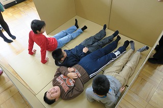 今日は、主に被災後に関する内容を町役場の先生から教えて頂きました。非常持出袋の紹介や非常食の試食、避難用だんボール畳の体験等どれもためになる内容ばかり。最後に防災検定問題を解きながら、防災講座のまとめをして防災意識を高めました。
