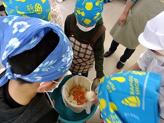 3年生がきびだんご作りに挑戦しました。沖波きび生産組合からお二人の先生にご指導ご協力をいただきました。大変手際よく作業が進み、最後は全員でできあがったきびだんごを美味しくいただきました。