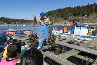 ふるさと教育「カキ棚見学」(3年生)(3月6日)