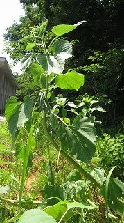 茎が曲がっているひまわり。そこからまた太陽に向かってのびています。