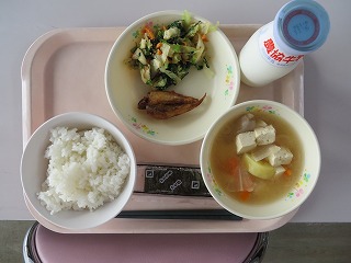 ごはん はたはたの唐揚げ ごまあえ さつま汁 焼きのり 牛乳