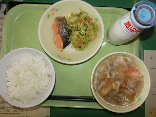 ごはん 鮭の塩焼き おひたし けんちん汁 牛乳