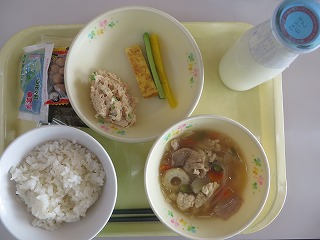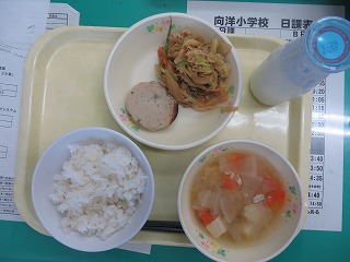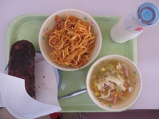 ココアパン スパゲティナポリタン コンソメスープ 牛乳
