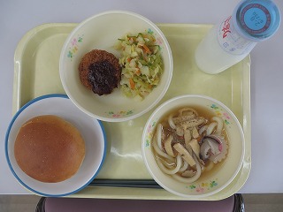 カツサンド なめこうどん 野菜ソテー 牛乳
