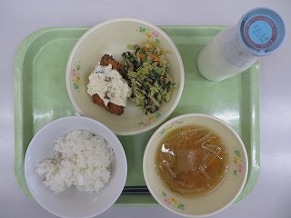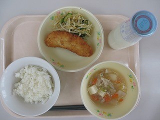 ごはん 魚のフライタルタルソース ごまあえ 五目スープ 牛乳