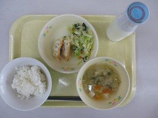 ごはん 豆腐の中華煮 浅漬け 焼きぎょうざ 牛乳