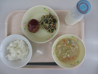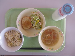 ごはん けんちん汁 ハンバーグ いそあえ 牛乳