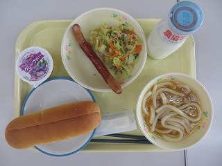 ウインナーサンド うどん 野菜ソテー ゼリー 牛乳