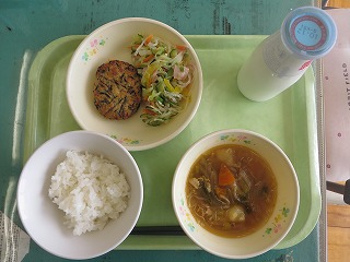 ごはん とうふハンバーグ 春雨サラダ 韓国風肉じゃが 牛乳