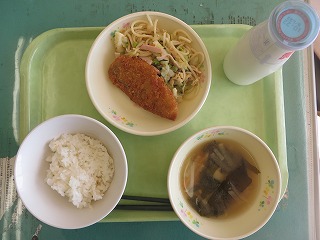 ごはん あじフライ 千草和え みそ汁 牛乳