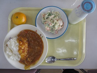 2017年10月18日 11時41分カレーライス 大根サラダ みかん 牛乳
