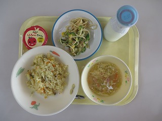 ミックスピラフ トマトスープ スパゲティサラダ ゼリー 牛乳