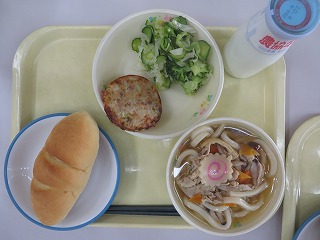 チーズクッペ きのこうどん ネギ焼き サラダ 牛乳