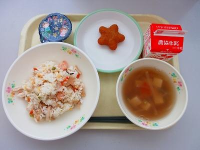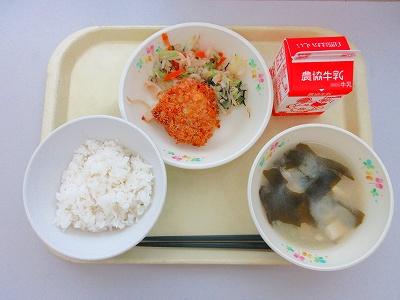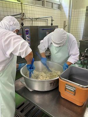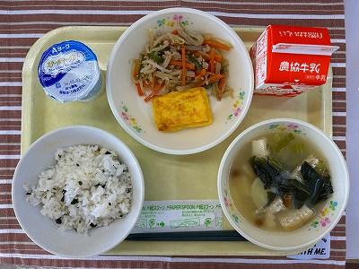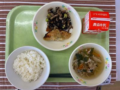 また、今日は久しぶりのわかめごはんでした。暑い日になったので、塩気のあるごはんがおいしかったです。給食のわかめごはんは、大麦を入れて炊いています。