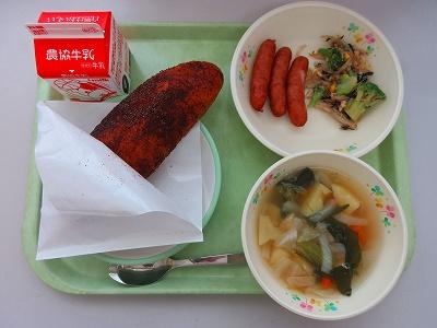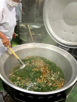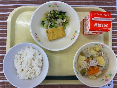 今日の汁物は、「塩にくじゃが」です。にんにくや塩こしょうを使用し、いつもの肉じゃがとは違った味わいです。今日は子どもたちもみんな食べ終わるのが早かったです。