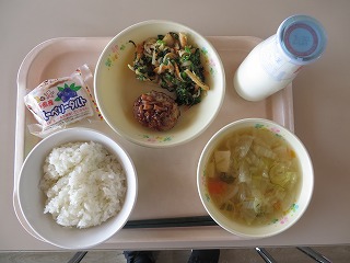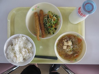 ごはん ししゃもフライ おひたし とりすき 牛乳