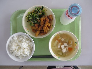 ごはん いかのカリン揚げ おひたし みそ汁 牛乳