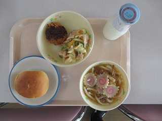 カツサンド なめこうどん 大根サラダ 牛乳