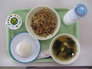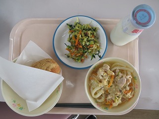 きなこパン 親子うどん おかかあえ 牛乳