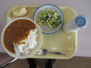 カレーライス サラダ りんご 牛乳