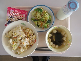 肉まん 焼きそば わかめスープ ゼリー 牛乳