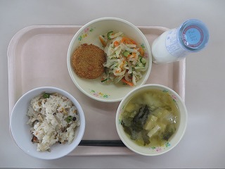 炊き込みご飯 ベストサンド 大根サラダ みそ汁 牛乳