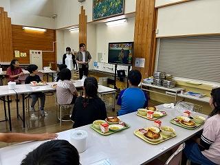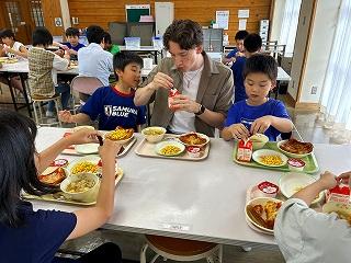 給食時間には、ジェイソン先生からアメリカの給食についてユニークな動画で説明してもらいました。忙しいメニューでしたが、子どもたちが喜んでくれたので調理員さんたちも嬉しそうでした!