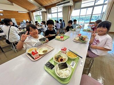 2年生は、ごはんの上にお肉をのりをのせ、自作の丼を作って楽しそうに食べていました(^▽^)