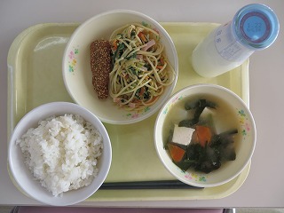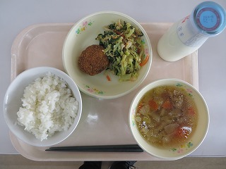 ごはん メンチカツ ごまあえ めった汁 牛乳
