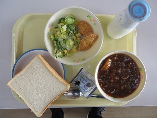 食パン ビーフシチュー ナゲット サラダ ジャム 牛乳